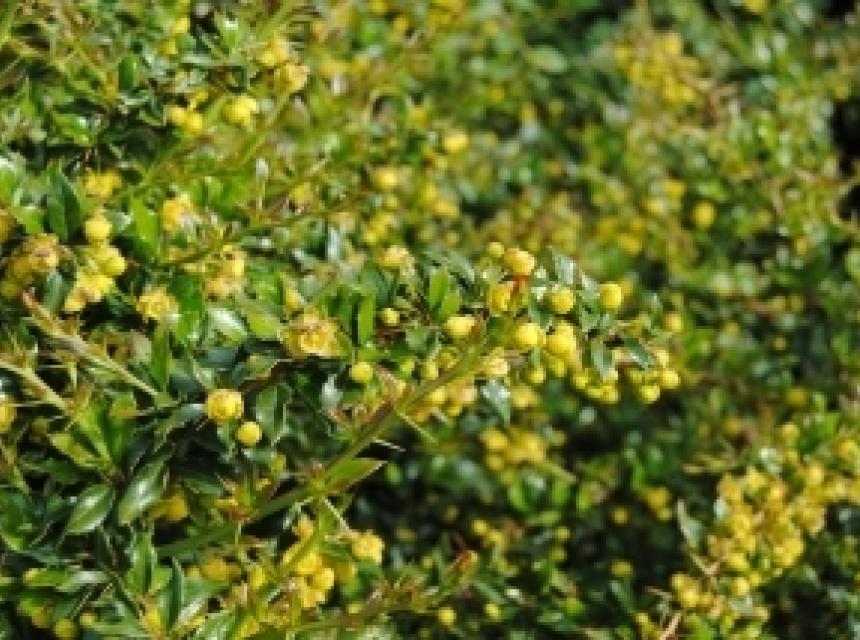 Le BERBERIS darwinii est un arbuste assez vigoureux, aux branches arquées de couleur rouge brunâtre. Les feuilles sont persistantes, dentées et de couleur vert sombre. Les fleurs apparaissent en mai et sont de couleur jaune d'or à petite taches rouges. Elles sont sous forme de grappes. Après la floraison apparaissent des baies charnues de couleur bleue